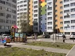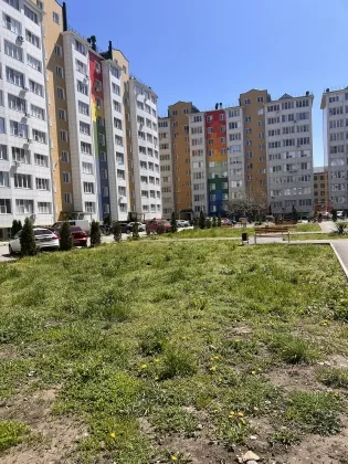 Две спальни и кухня-столовая,окна выходят во двор на зеленую зону. Комнаты на две стороны.