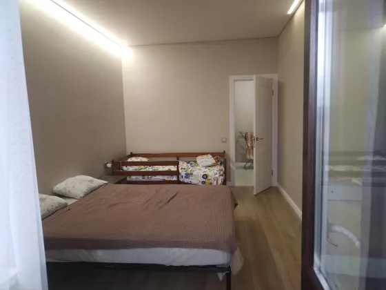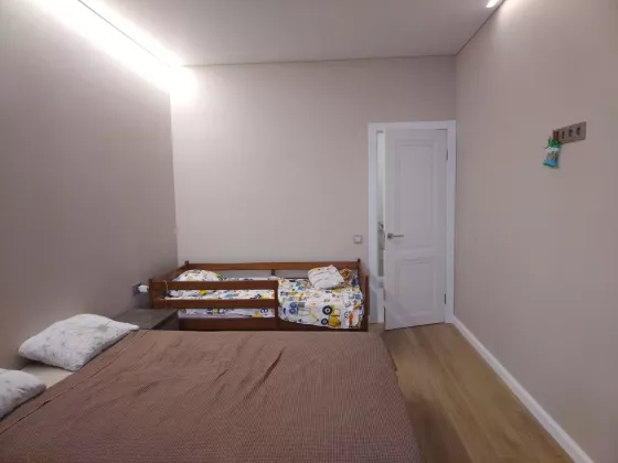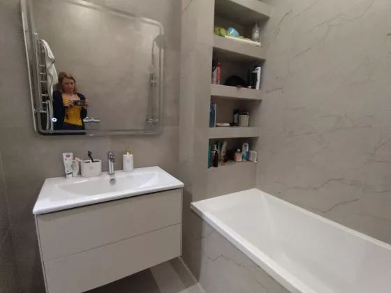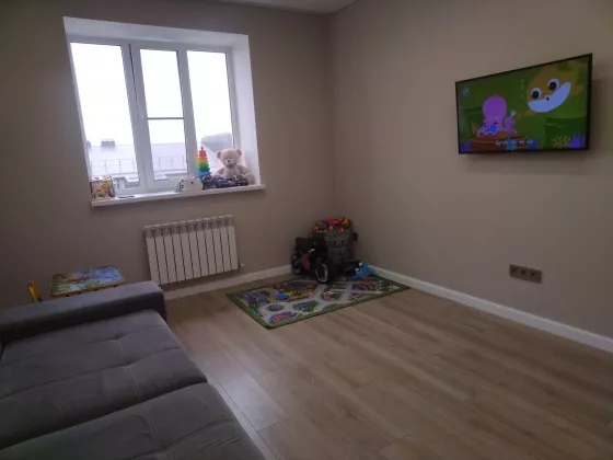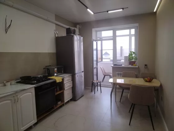 В квартире сделан качественный и современный ремонт в европейском стиле. Отличная планировка: холл, кухня 14 кв.м, две комнаты, два застекленных балкона, из кухни и из спальни, гардеробная, совмещенный с/узел. Дом с закрытой территорией , ворота на пульте .Теплые полы в кухне, ванной, на балконах.