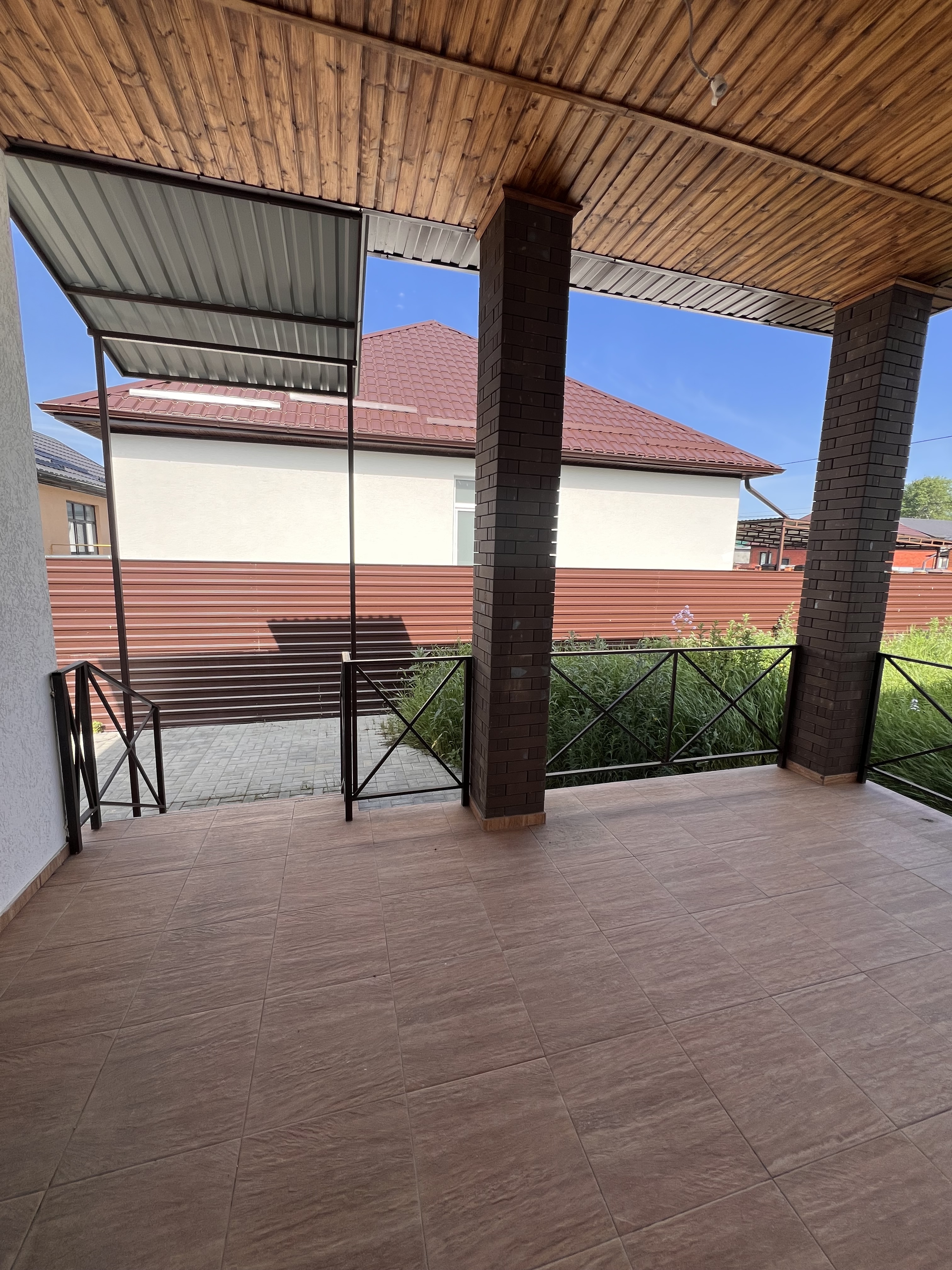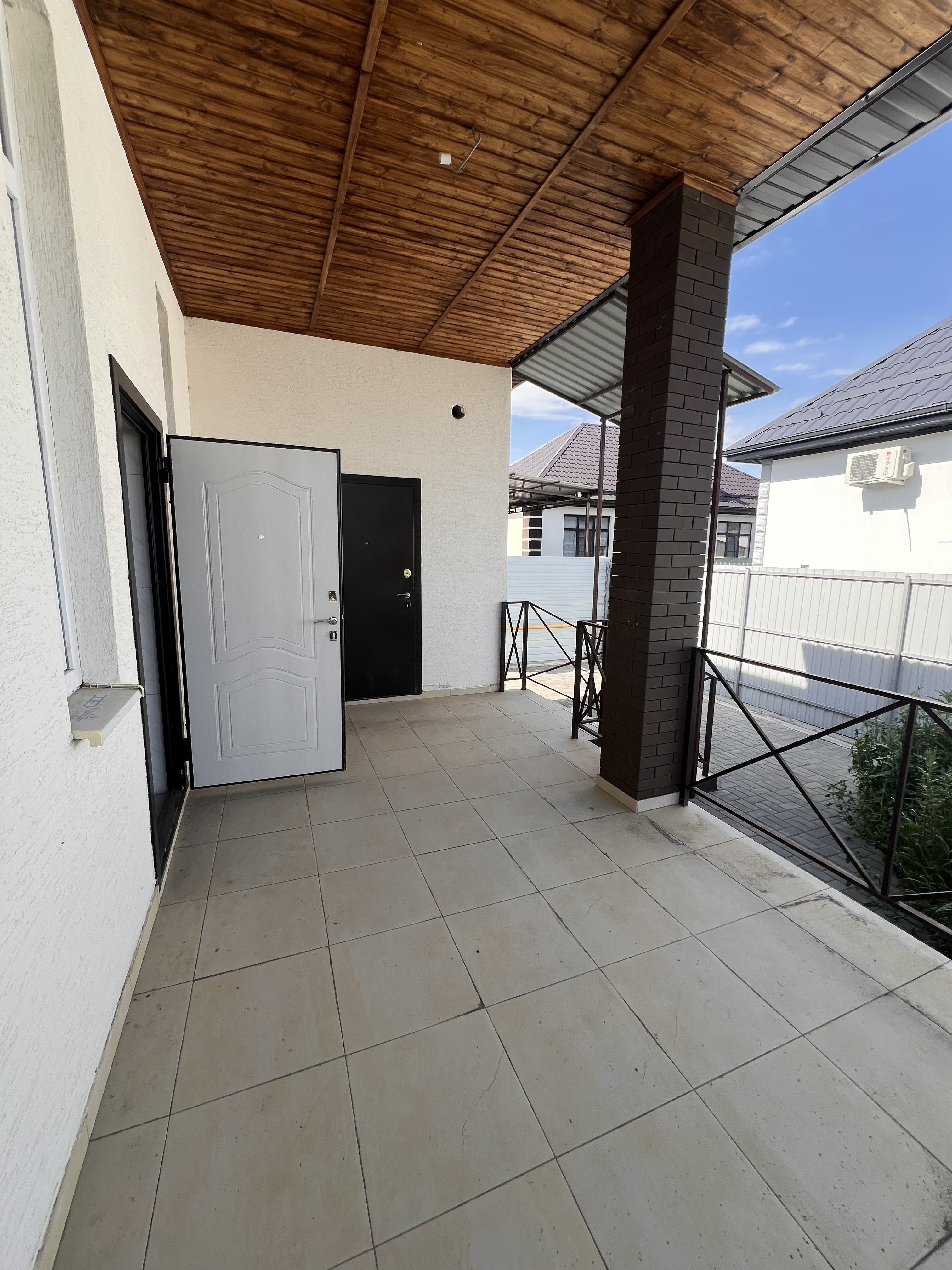 Очень удобная планировка: просторная кухня-гостиная на крытую террасу, зал, три спальные комнаты, два санузла, прихожая. На террасе с отдельным входом кладовая.