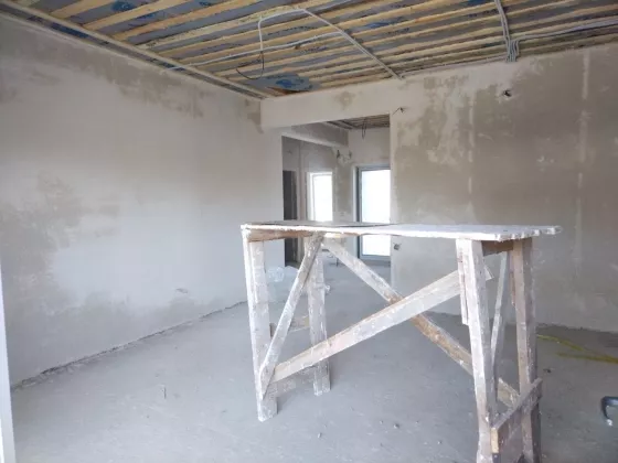 В доме много естественного света благодаря большим современные окнам в пол и высоте потолка 3 метра. Из кухни-гостиной выход на просторную террасу.