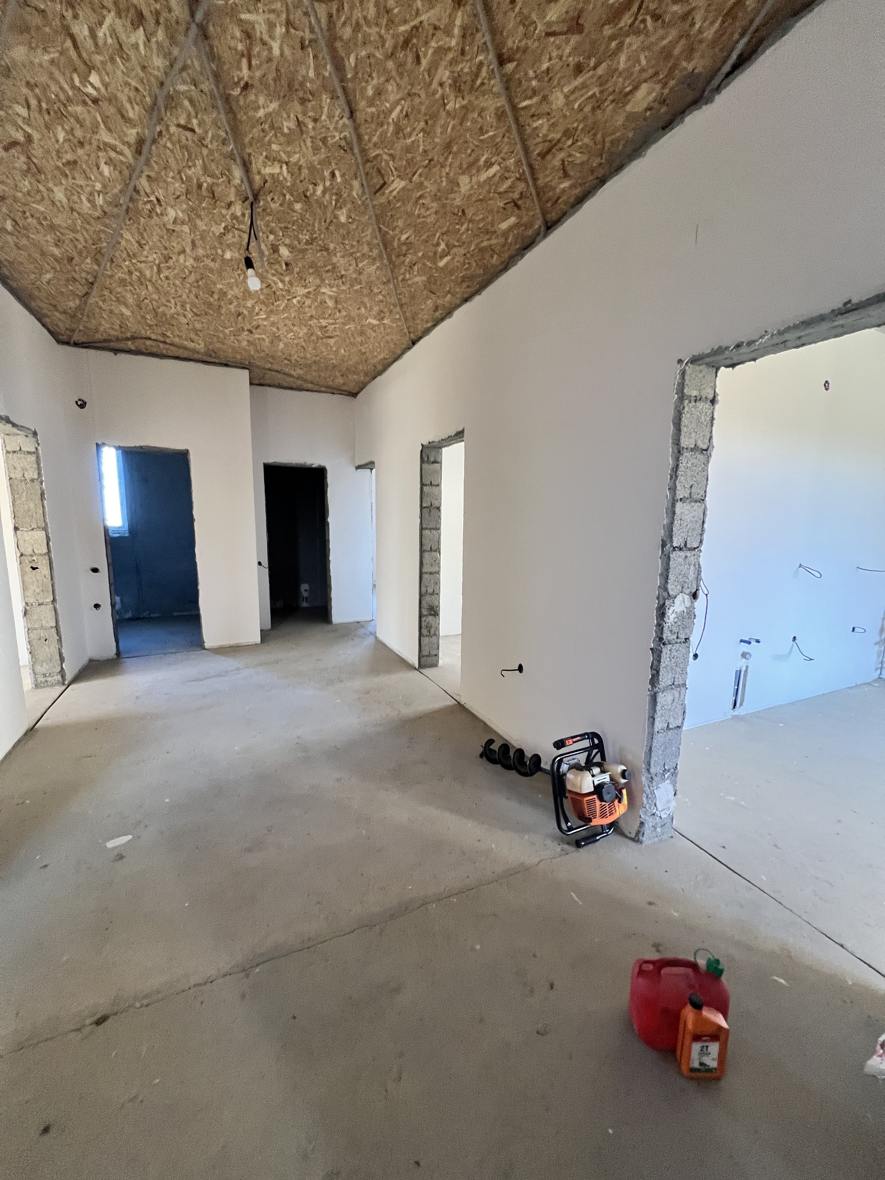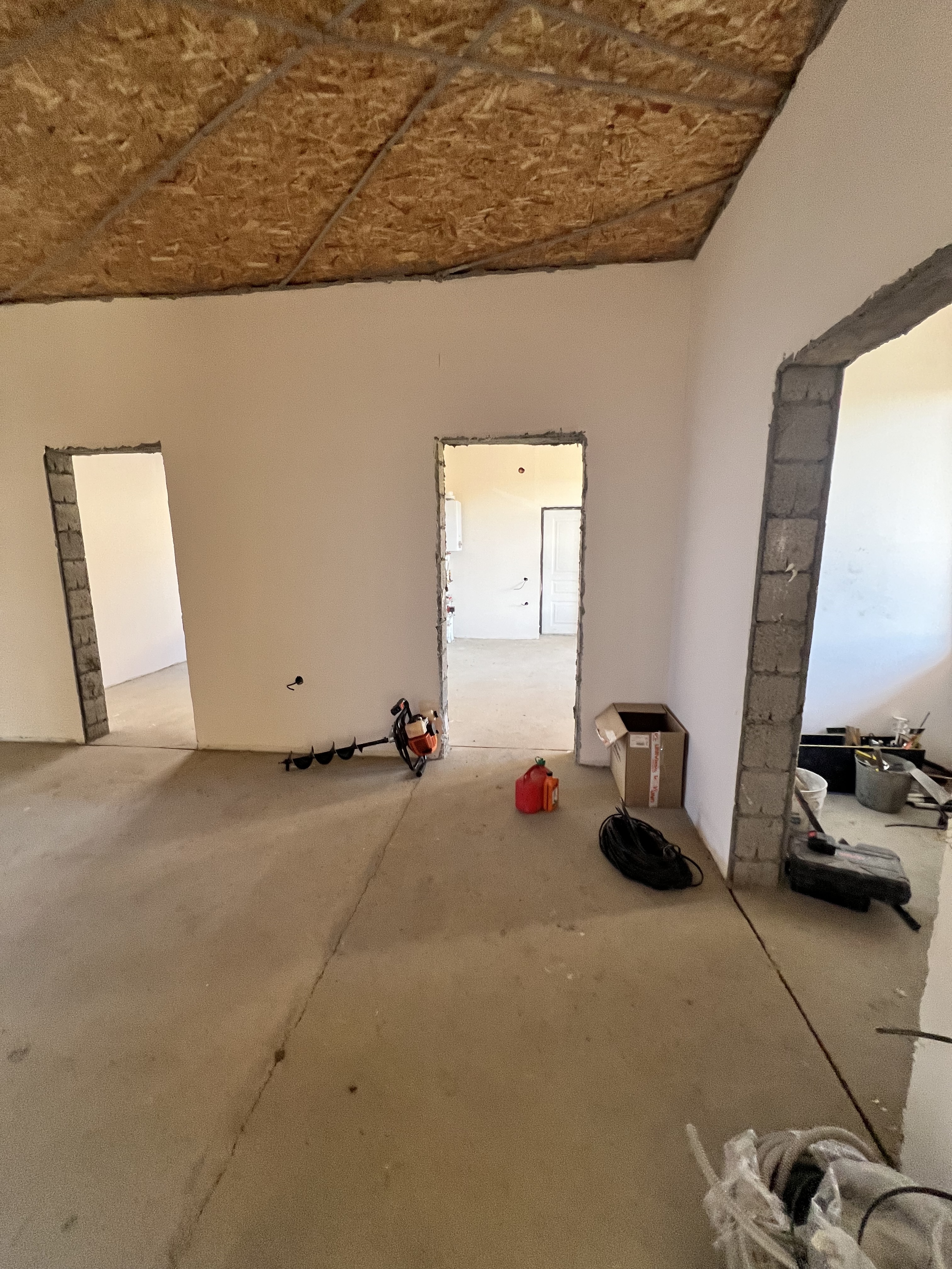 -Дом предложен с пред чистовыми работами :Разводка электрики и отопления, теплые полы , котел радиаторы ,штукатурка , стяжка.