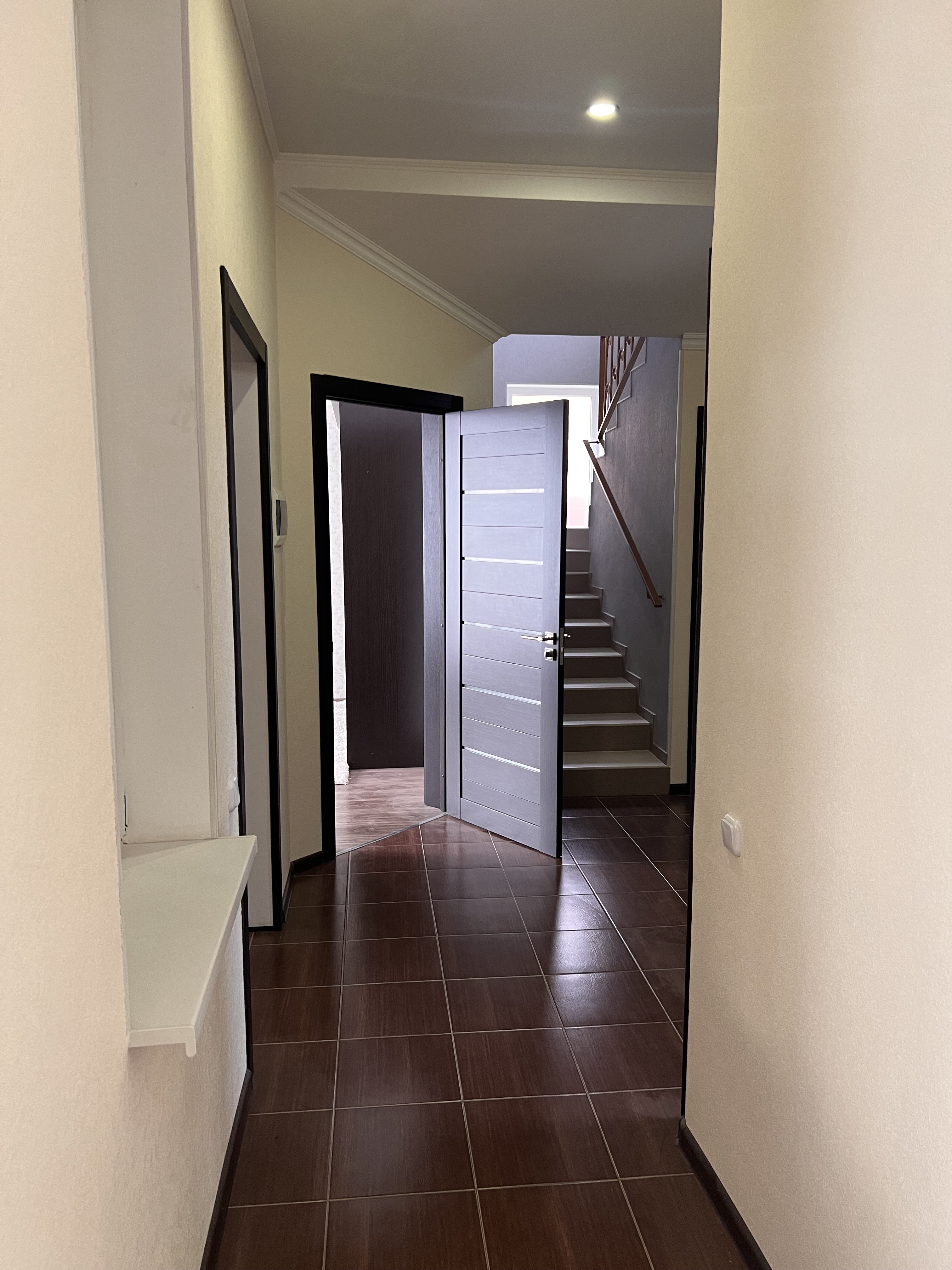 Удобная планировка: первый этаж: холл, просторная кухня - гостиная, спальня, санузел, кладовая. второй этаж: три изолированные спальни, санузел, балкон. В доме все коммуникации центральные: вода. канализация , электричество и газ. Есть высокоскоростной оптоволоконный интернет, видеонаблюдение, спутниковое телевидение.