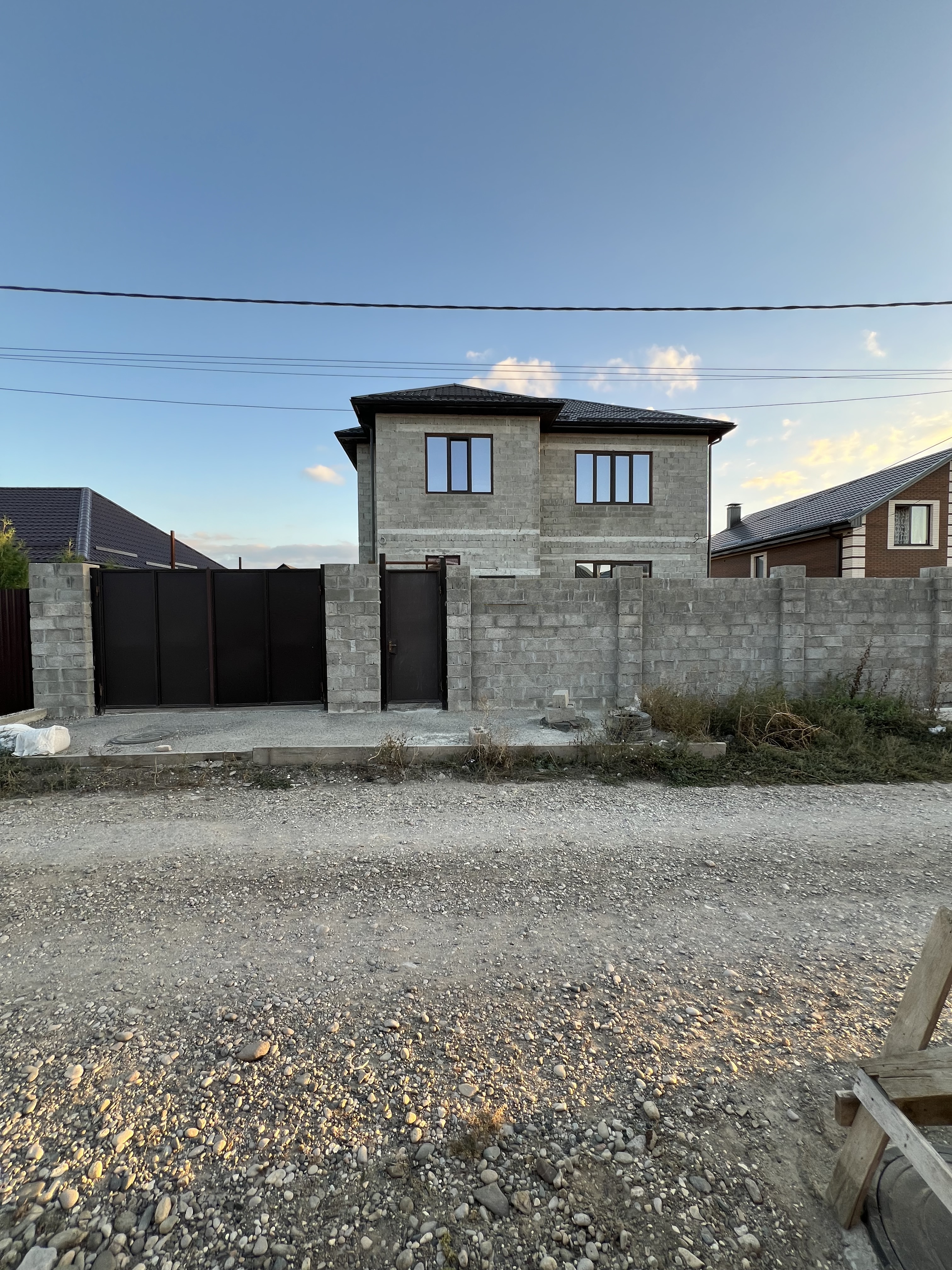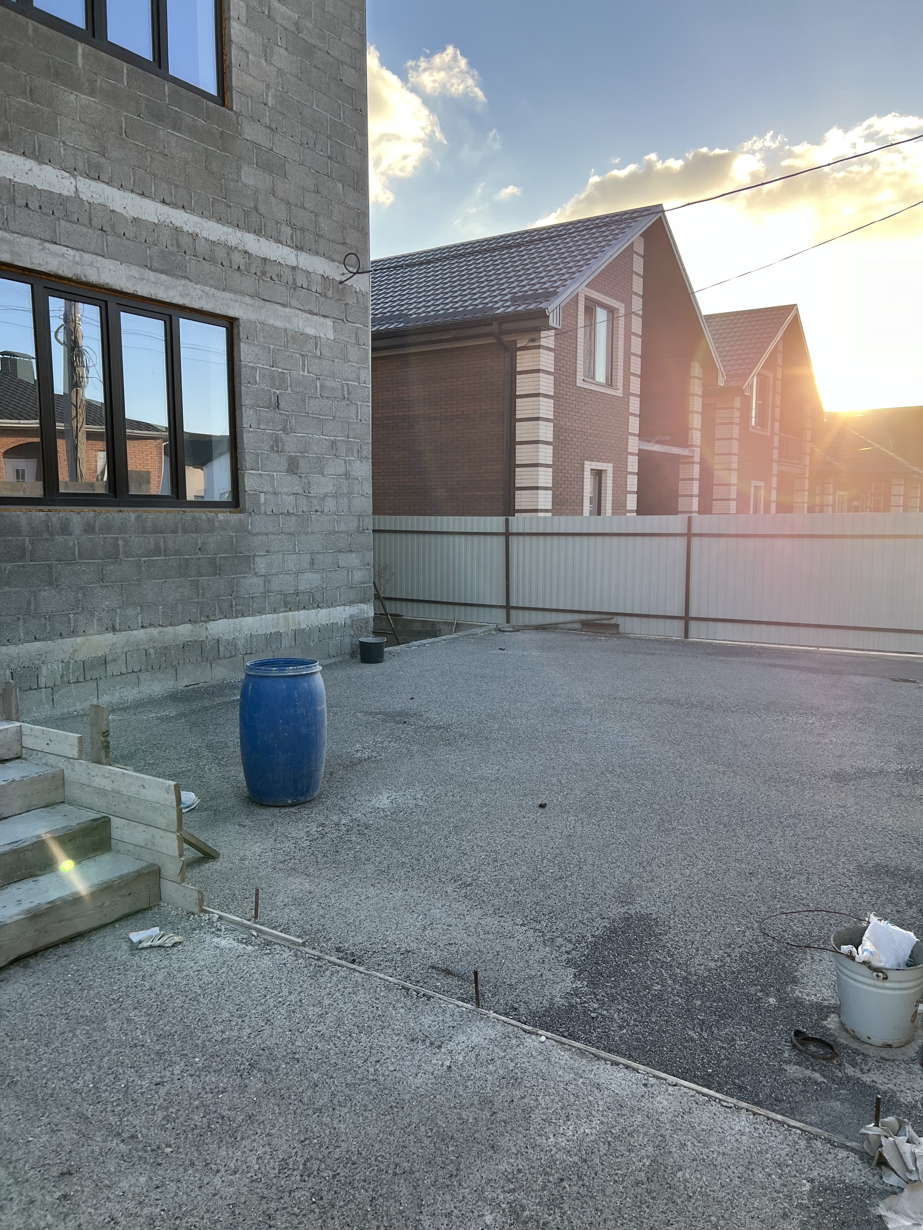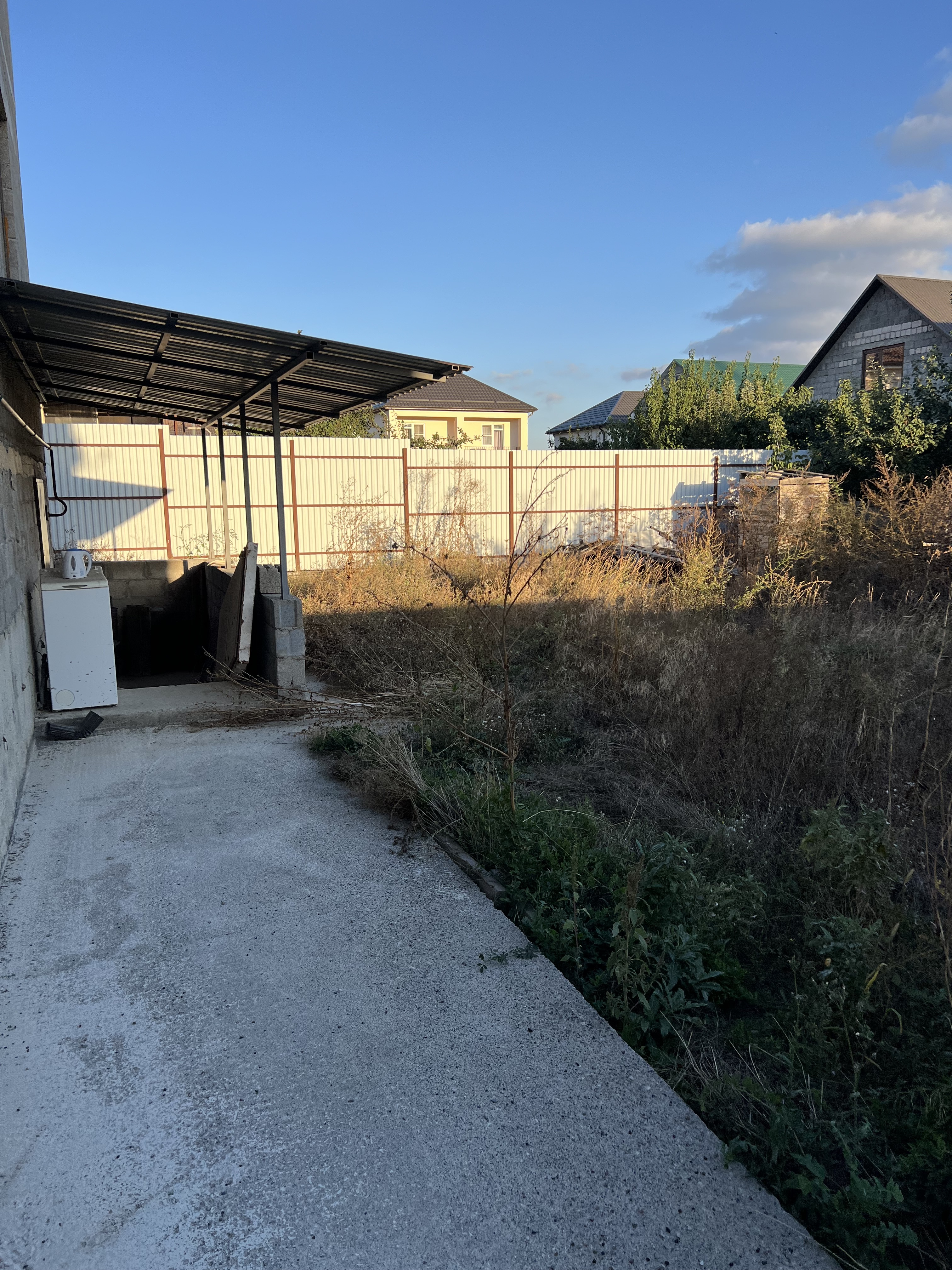 Во дворе вокруг дома отмостка, по периметру всего участка установлены: забор, ворота и калитка.