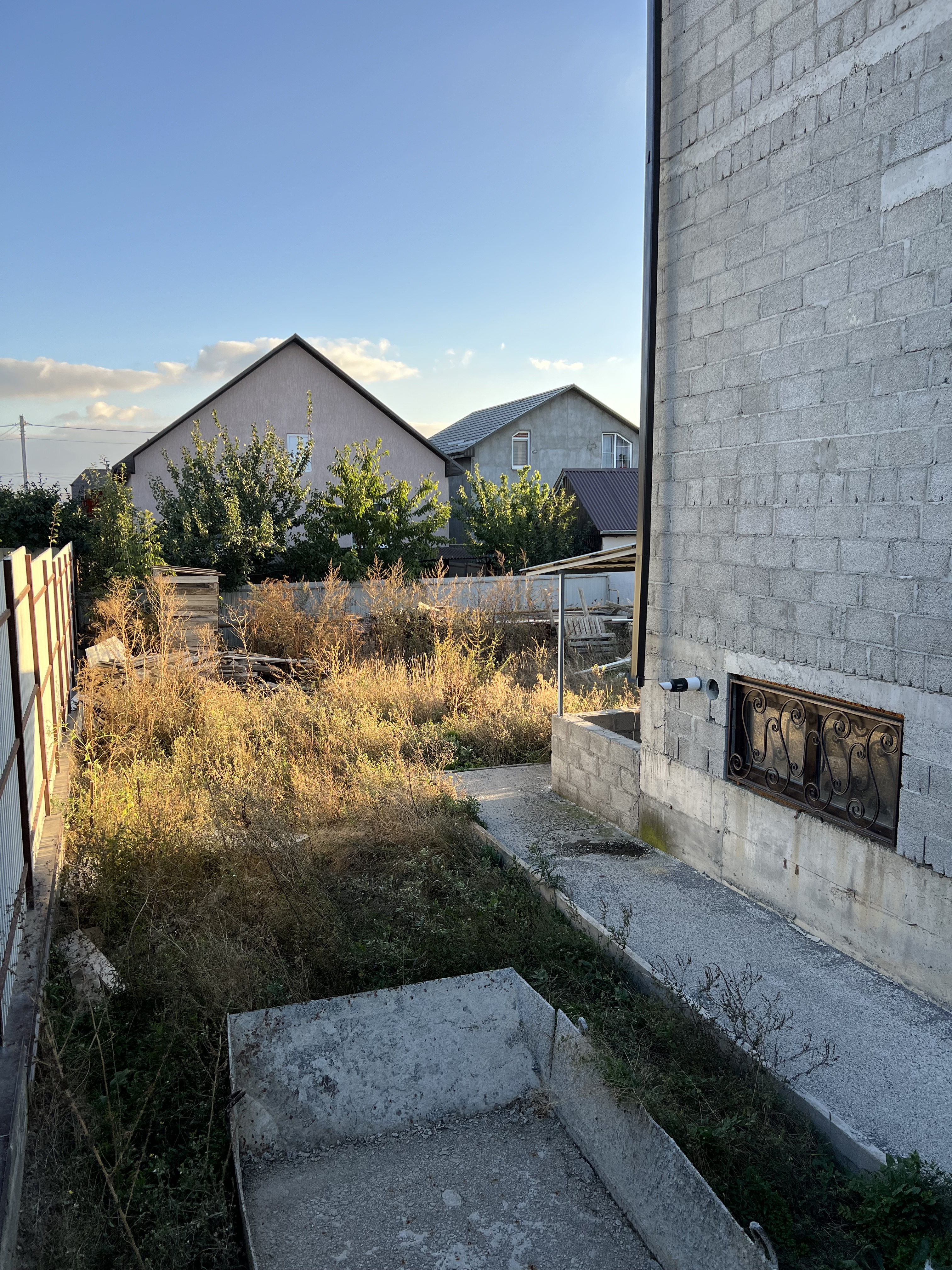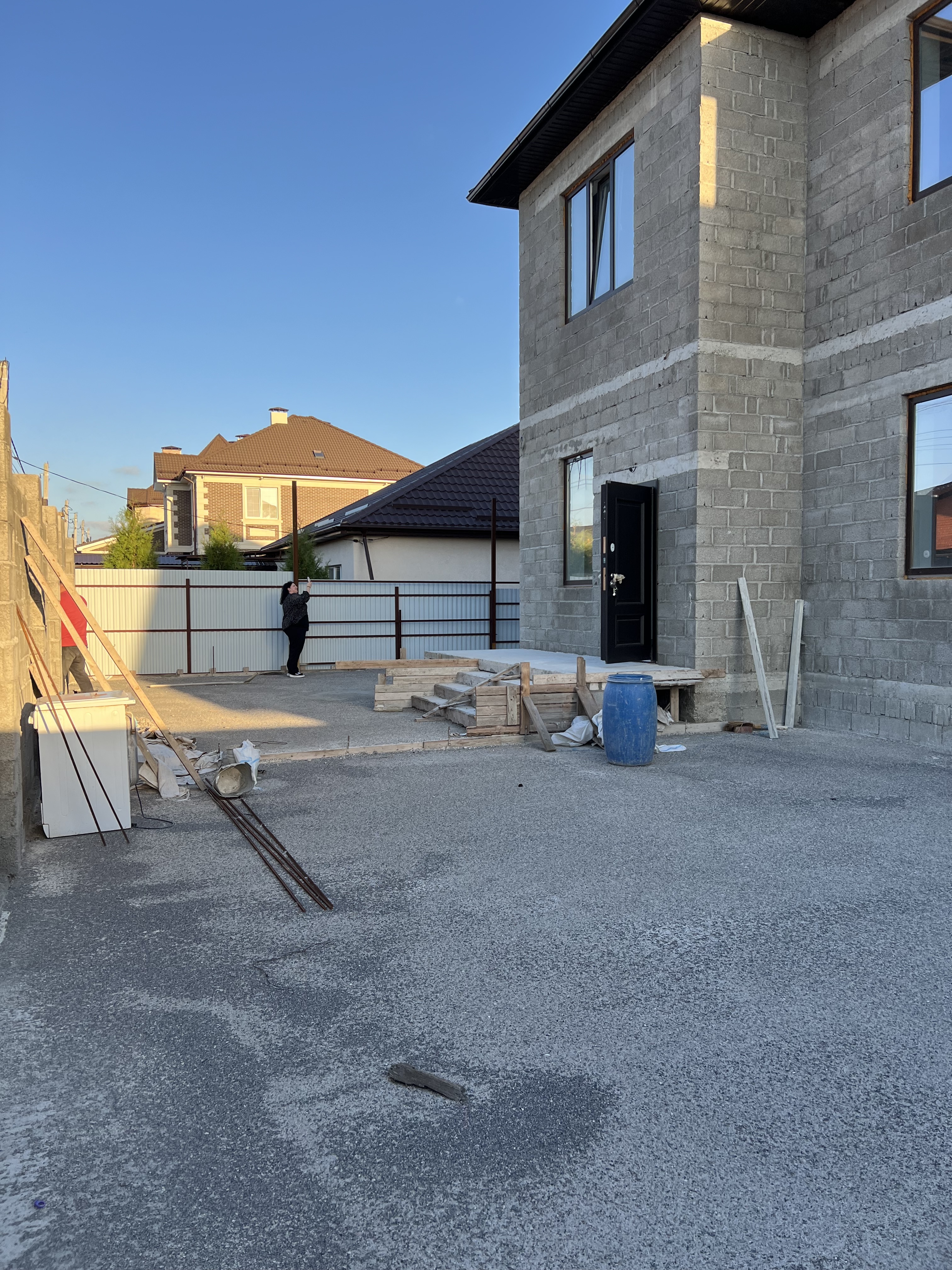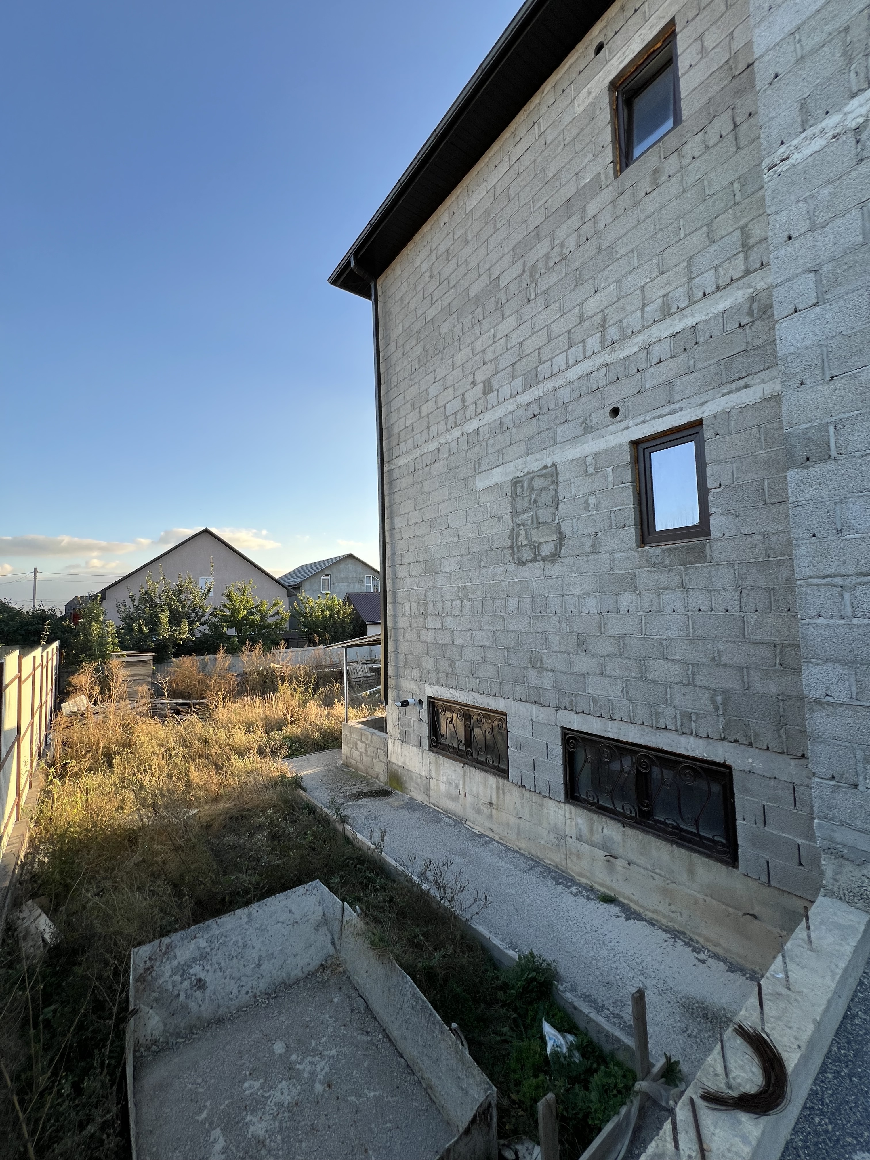 Во дворе вокруг дома отмостка, по периметру всего участка установлены: забор, ворота и калитка.