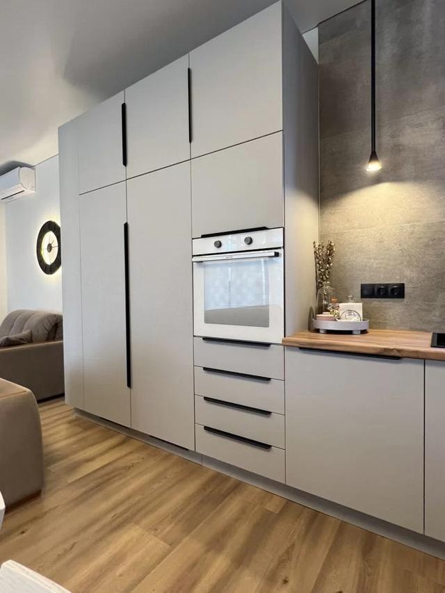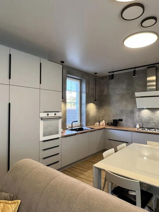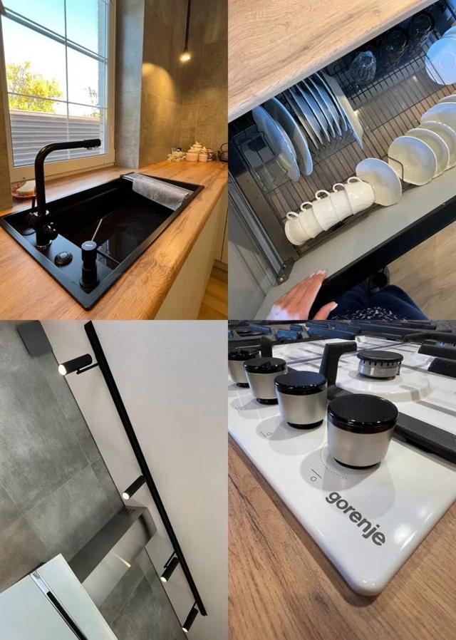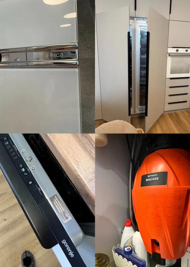 Техника: Gоrеnjе, вытяжка Еlikа (Италия), раковина и измельчитель Оmоikiri (Япония). Большой встроенный холодильник и морозильная камера. Посудомоечная машина. Духовой шкаф. Нижняя сушка для посуды.