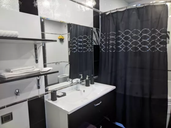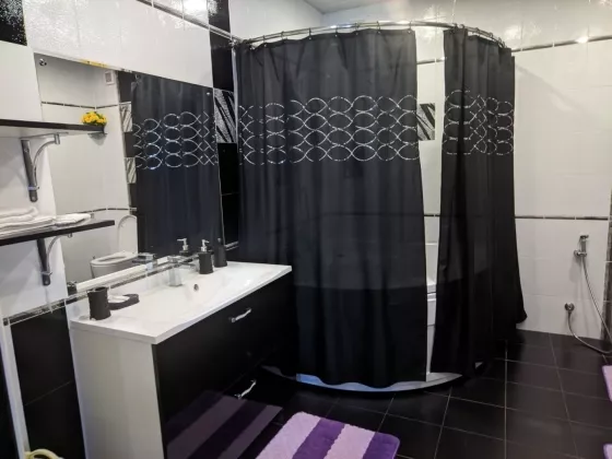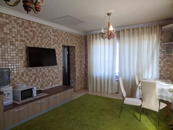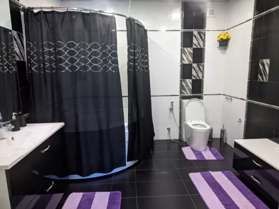 Дом полностью обустроен и меблирован. Теплый пол везде , где плитка. Шикарная просторная спальня с кроватью king-size, диван- кровать, ванная комната , Wi-Fi, кухня -столовая со всем необходимым-посудой и т.д..
