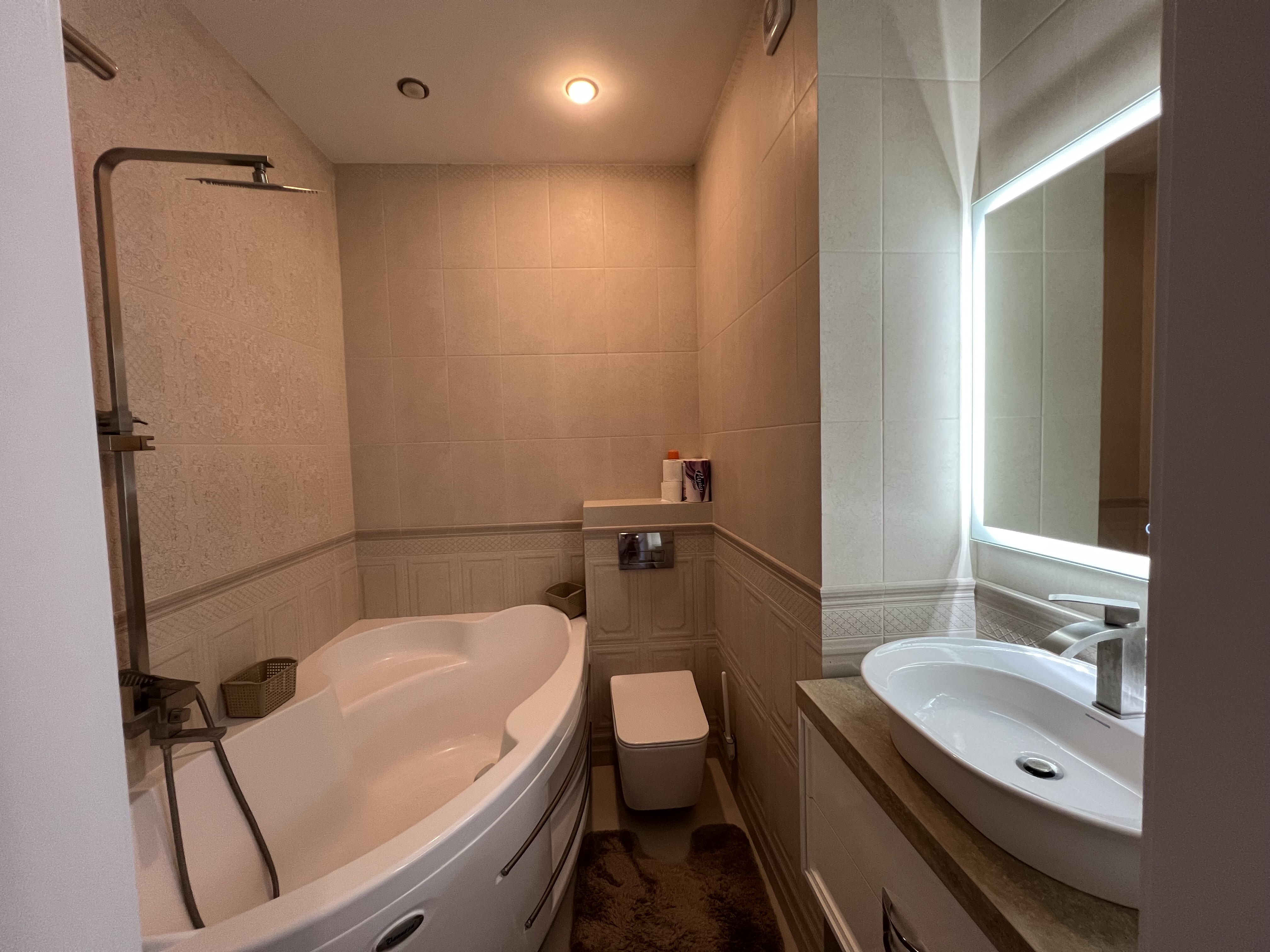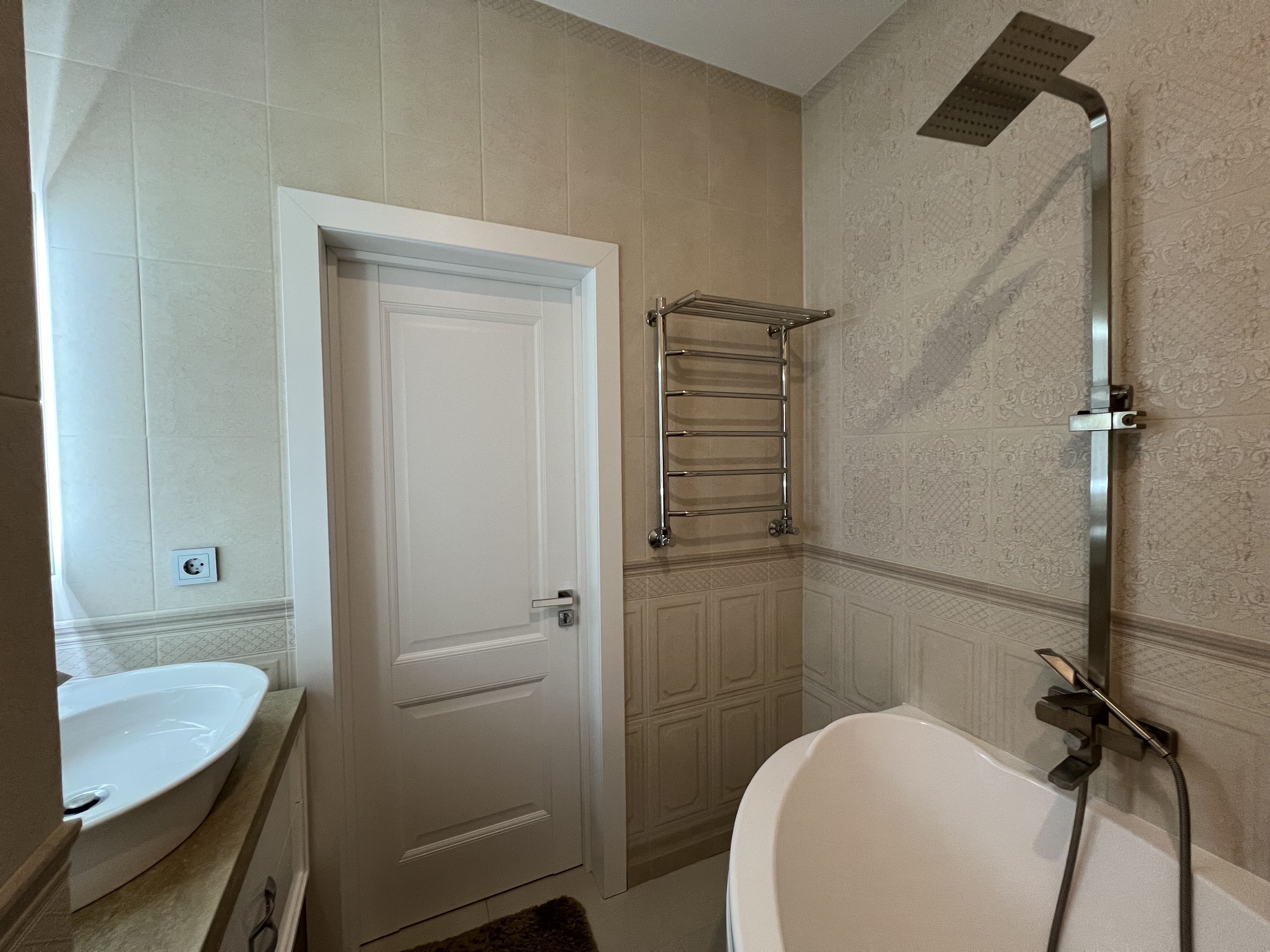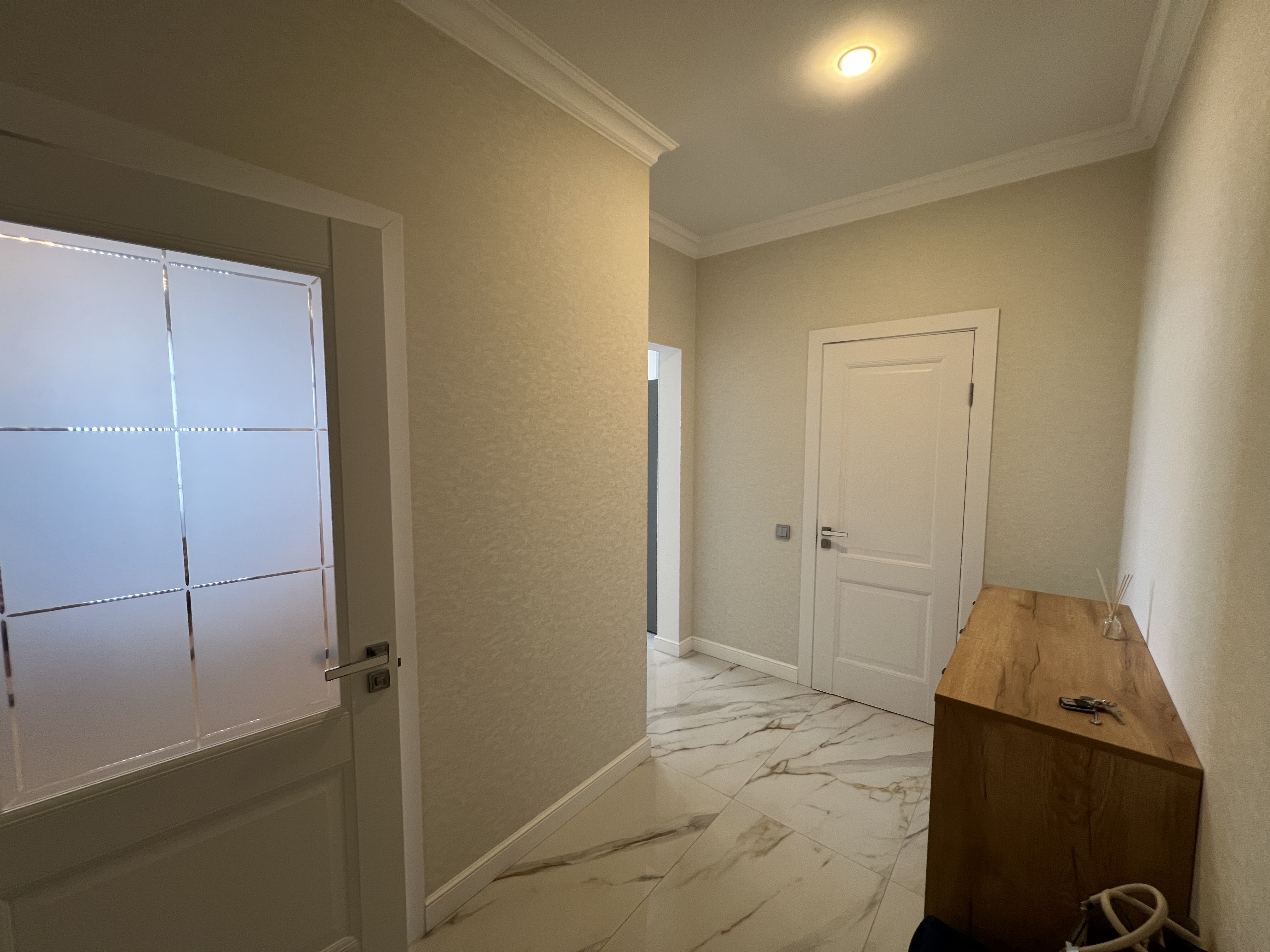 Эксклюзивное предложение. Сдается квартира с новым дизайнерским ремонтом в доме с закрытой территорией. Индивидуальное газовое отопление и горячее водоснабжение. Ворота на пульте. Сдаем на  срок от года  только чистоплотным и ответственным людям. В квартире есть стиральная машина, холодильник, два больших телевизора, интернет, кондиционер, газовая печь,духовка, вытяжка, кофемашина. Двуспальная кровать  с новым комфортным матрасом и двухспальный диван. Есть пылесос, сушилка для белья, утюг, одеяла, покрывало, посуда для приготовления пищи и столовая посуда. Оплата: арендная плата в месяц 40 000 + коммуналка 4000 +залог 40 000 возвращается при выезде если все в порядке. Комиссия 50% от оплаты за месяц. Вся инфраструктура в пешей доступности.