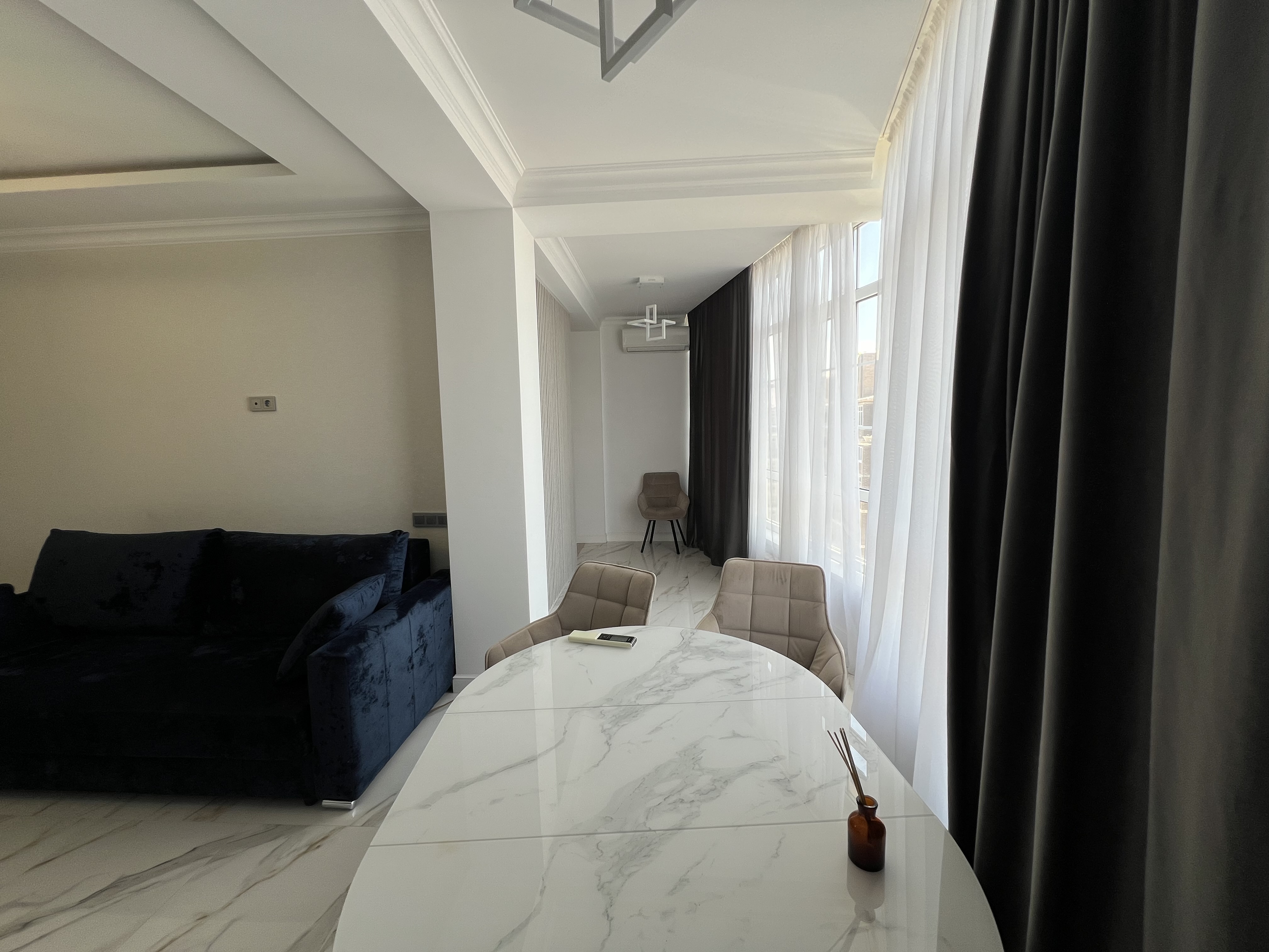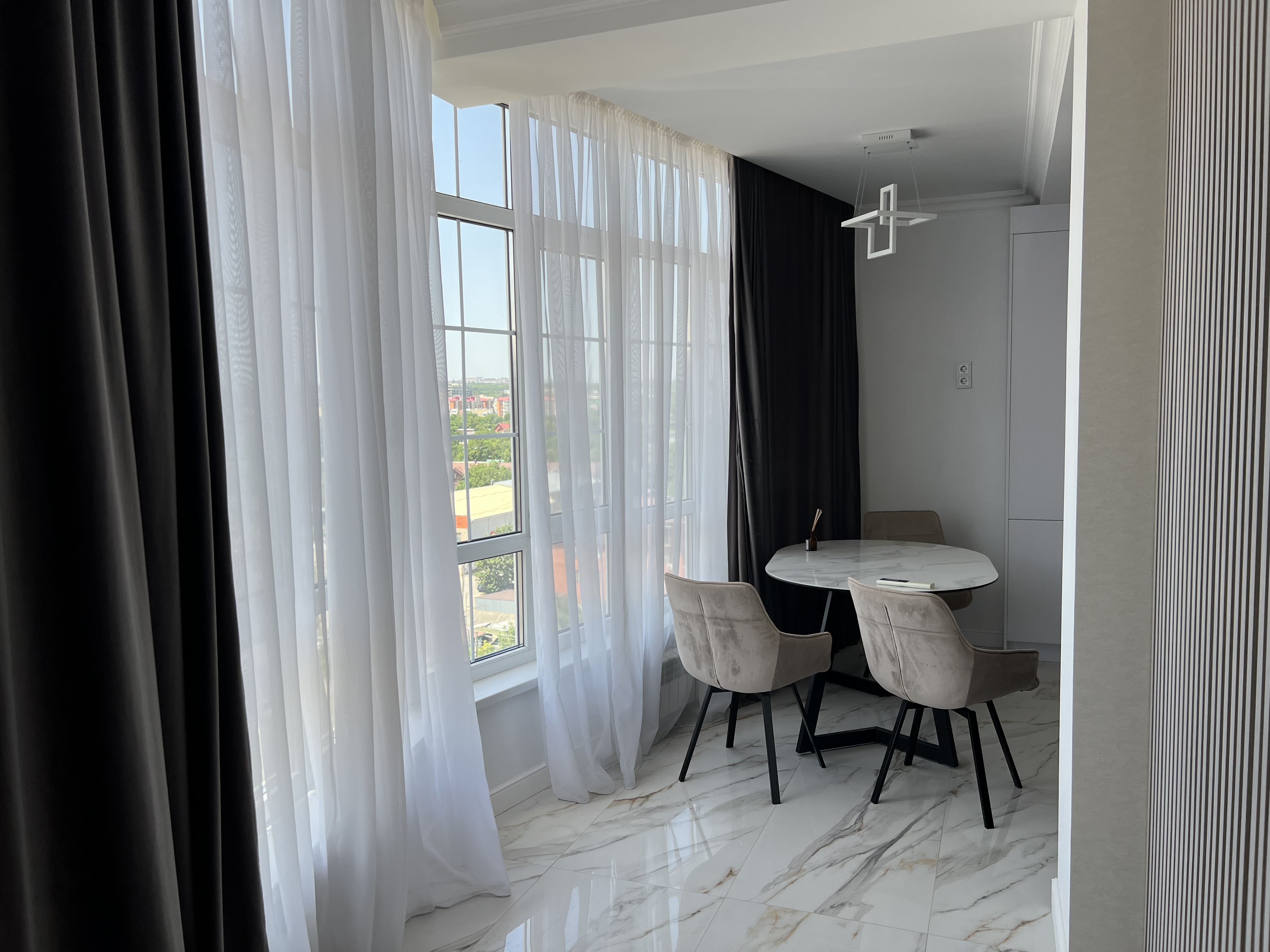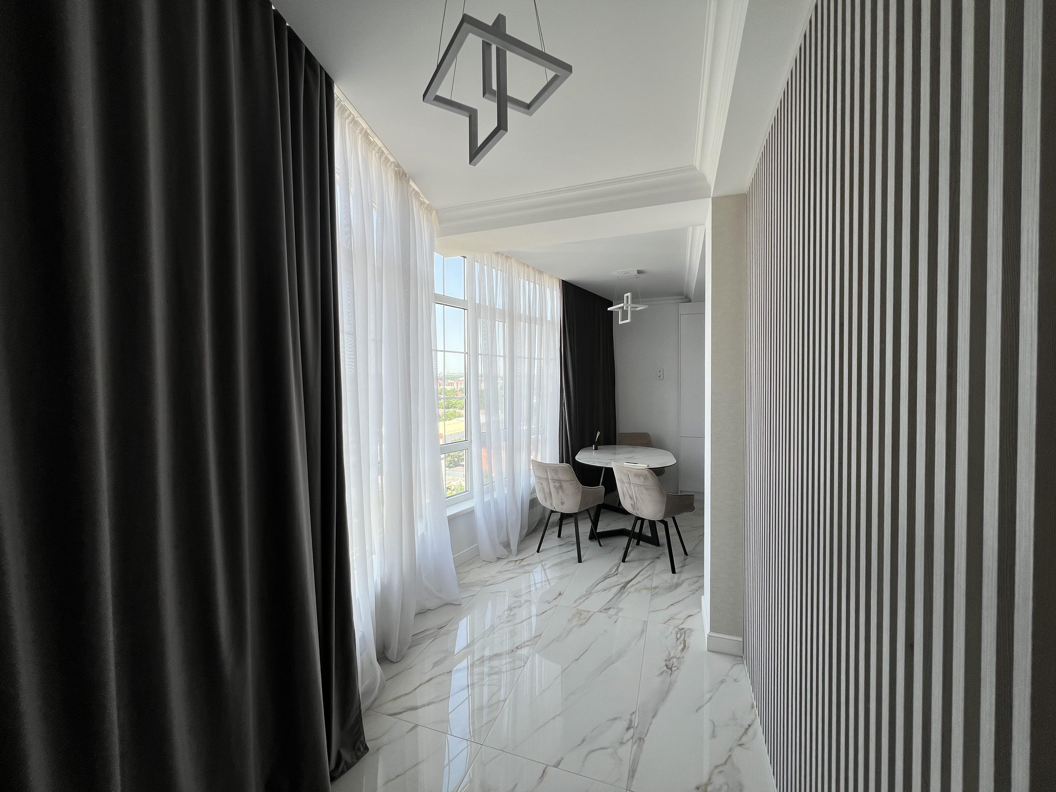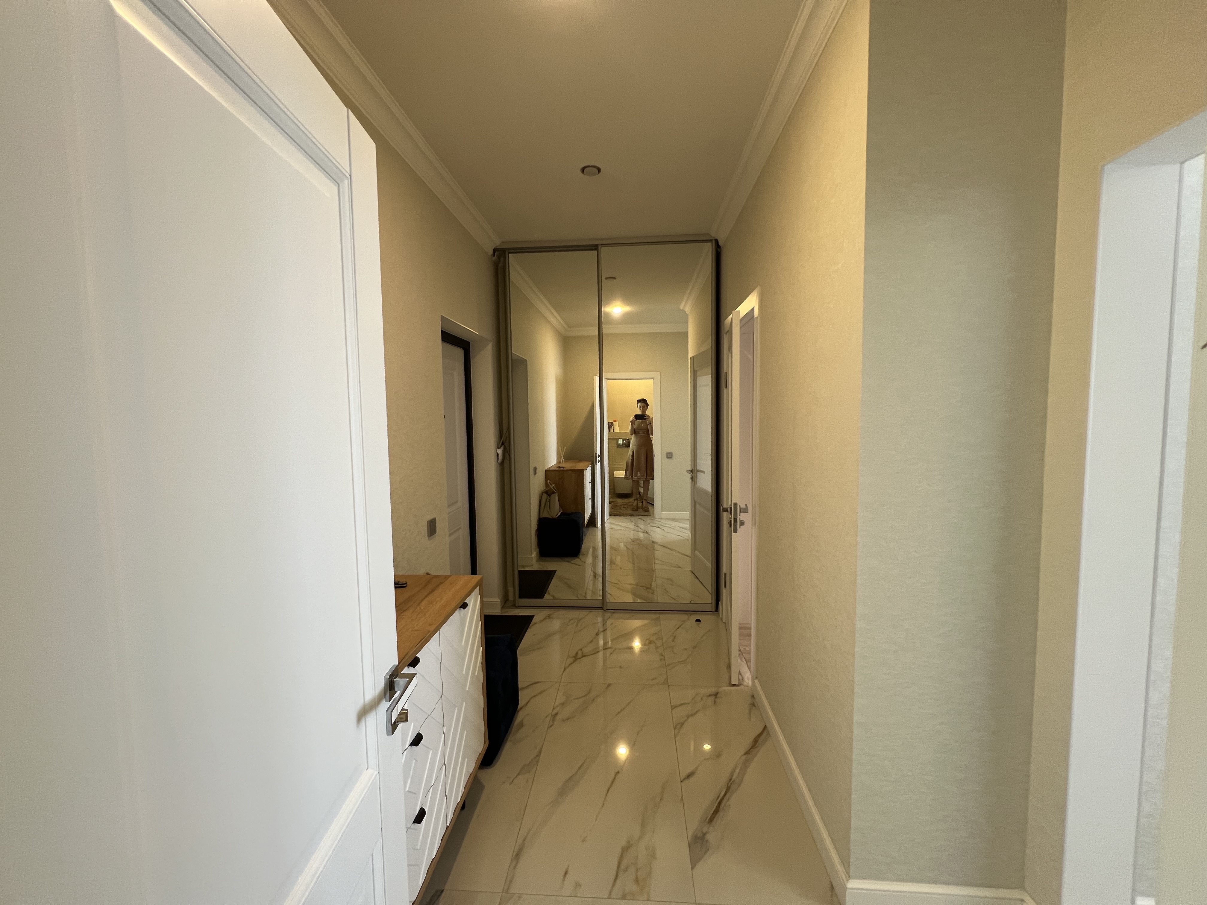 Эксклюзивное предложение. Сдается квартира с новым дизайнерским ремонтом в доме с закрытой территорией. Индивидуальное газовое отопление и горячее водоснабжение. Ворота на пульте. Сдаем на  срок от года  только чистоплотным и ответственным людям. В квартире есть стиральная машина, холодильник, два больших телевизора, интернет, кондиционер, газовая печь,духовка, вытяжка, кофемашина. Двуспальная кровать  с новым комфортным матрасом и двухспальный диван. Есть пылесос, сушилка для белья, утюг, одеяла, покрывало, посуда для приготовления пищи и столовая посуда. Оплата: арендная плата в месяц 40 000 + коммуналка 4000 +залог 40 000 возвращается при выезде если все в порядке. Комиссия 50% от оплаты за месяц. Вся инфраструктура в пешей доступности.
