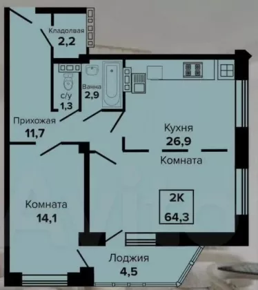 Шикарная планировка- холл переходит в гостиную , изолированная спальня с лоджией и раздельный санузел, а еще кладовая делают эту квартиру по максимуму функциональной.