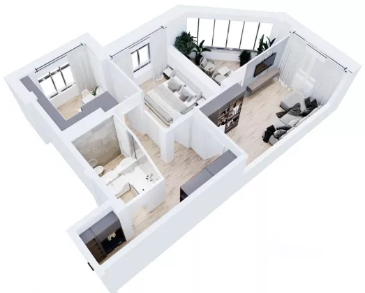Шикарная планировка- можно оставить ее двухкомнатной, а можно сделать полноценную трешку: холл переходит в гостиную ,две изолированные спальни с панорамными окнами и раздельный санузел, уютная кухня делают эту квартиру по максимуму функциональной.