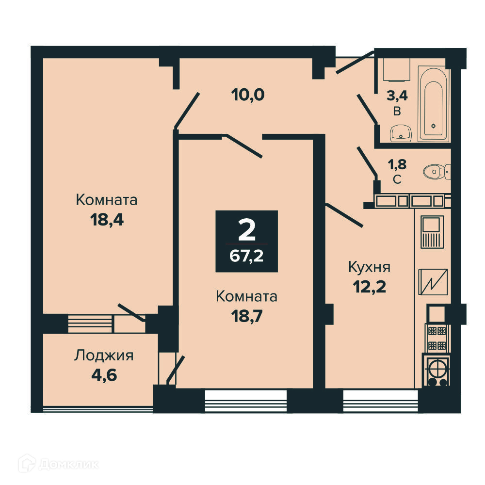 Продается 2-х комн. новостройка, 71.6 кв.м., 3/6 эт