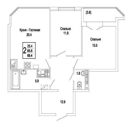 Продается 2-х комн. новостройка, 69.4 кв.м., 8/9 эт